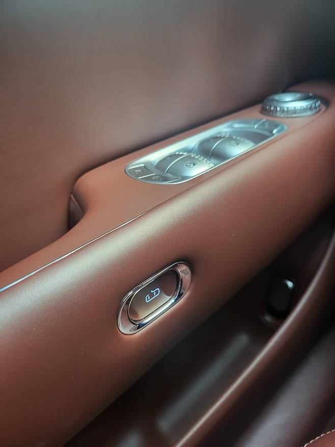 시승을 위해 차량으로 다가가니 도어 속에 숨겨져 있던 '오토 플러시 도어 핸들'이 쑥 튀어나온다. 탑승한 뒤에는 센터콘솔이나 차량 안쪽 문 하단에 있는 이즈 클로즈 버튼을 누르면 자동으로 문이 닫힌다. 운전석 외 동승석과 뒷좌석에도 이즈 클로즈 버튼이 동일한 위치에 배치돼 있다. 이 기능은 제네시스 최초로 적용됐다.