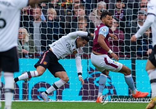 epa10290495 Manchester United's Cristiano Ronaldo (L) clashes with Aston Villa's Tyrone Mings (R) during the English Premier League soccer match between Manchester City and Fulham at Villa Park in Birmingham, Britain, 06 November 2022. EPA/PETER POWELL EDITORIAL USE ONLY. No use with unauthorized audio, video, data, fixture lists, club/league logos or 'live' services. Online in-match use limited to 120 images, no video emulation. No use in betting, games or single club/league/player publications