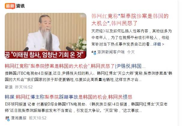 윤석열 대통령 부부와 친분이 있는 것으로 알려진 '천공스승'이 이태원 참사 직후 보인 반응과 관련해 중국에서 연일 그에게 이목이 집중됐다.