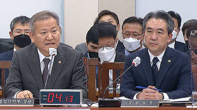 다만 야당은 이상민 행정안전부 장관과 윤희근 경찰청장을 정조준해 책임론을 제기하며 사퇴를 강하게 압박한 반면, 여당은 문재인 정부에서 임명된 경찰대 출신 이임재 전 용산경찰서장, 류미진 총경(참사 당시 서울경찰청 상황관리관) 등의 '보고체계 문제' 등을 상대적으로 더 부각하는 모습이었습니다.