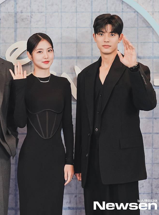 배우 신예은, 로몬이 11월 8일 오전 온라인으로 진행된 디즈니+ '3인칭 복수' 제작발표회에서 포즈를 취하고 있다.