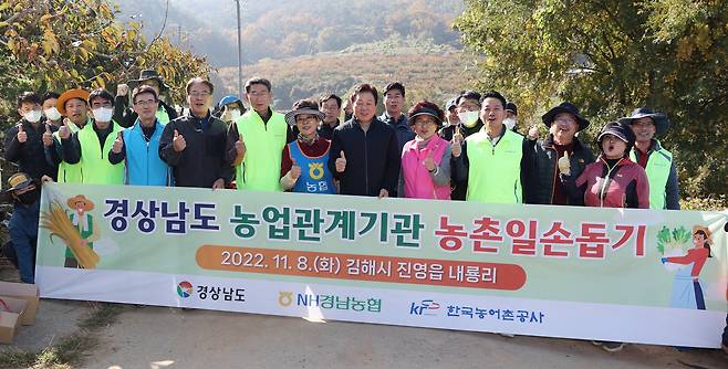 이날 농촌일손돕기는 농협 경남지역본부, 한국농어촌공사 경남지역본부 직원을 포함해 120여 명이 참여했다.