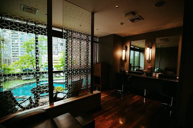 쉐라톤 그랜드 스쿰빗의 수영장은 방콕의 푸껫이다. 푸껫의 휴양에 대입하는 이유는 진짜 그곳에 자연의 시간이 깃들었기 때문이다. 쉐라톤 그랜드 스쿰빗은 1997년에 오픈한 호텔이다. 시간이 흘러 우아함이 되었고, 꾸준한 관리가 견고함을 만들었다. 이런 곳을 '럭셔리 호텔'이라고 부른다.