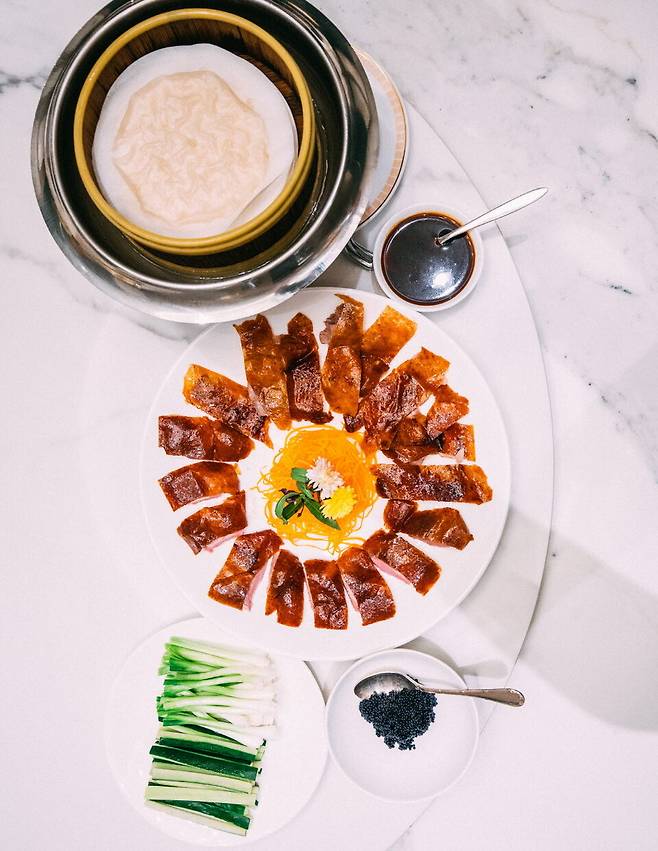 2인이라면 딤섬 시그니처와 베이징덕을 메인으로 즐기면 된다. 베이징덕은 통째로 서빙 후 껍질에 위스키를 뿌려 불을 낸다. 그럼 훨씬 바삭해지고, 무엇보다 윤기가 돈다. 밀전병에 쪽파와 오이를 얹고, 베이징덕과 소스를 뿌린다. 그리고 마지막으로 캐비어 반 스푼을 퍼 올리면 딱이다. 남은 베이징덕으로는 요리를 내어 준다. 국수, 볶음 다양한 방법 중에 칠리소스를 얹은 탕수육이 최고다. 맥주 안주로 이만한 대체재가 없다. 국내 어느 고급 중식당과 견줘도 충분할 맛이다. 그런데 가격은 반이다. 고민할 이유가 없다.