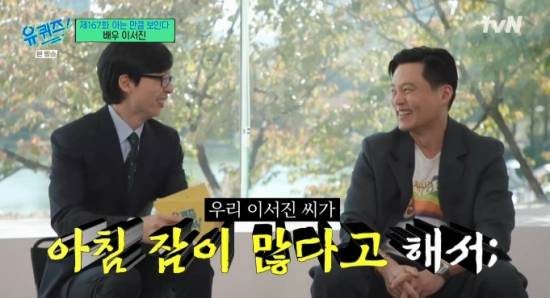 유재석은 "우리가 아침에 녹화를 하는데 이서진 씨가 아침잠이 많다고 해서 오후에 모셨다"라며 귀띔했다.