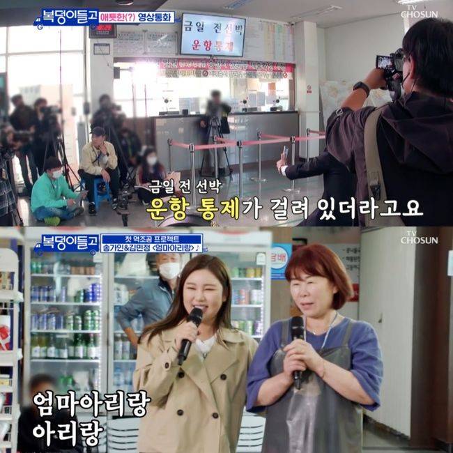 하지만 궂은 날씨 탓에 풍도로 가는 배는 결국 ‘출항금지’ 조치가 내려져 운항하지 못했다. 이에 두 사람은 처음에 믿지 못했고 운항이 재개되기를 간절히 바랐다. 결항이 확정되자 김호중은 아쉬운 마음을 달래기 위해 기타로 ‘이등병의 편지’를 연주하는 등 송가인과 함께 나레이션을 펼쳤다.