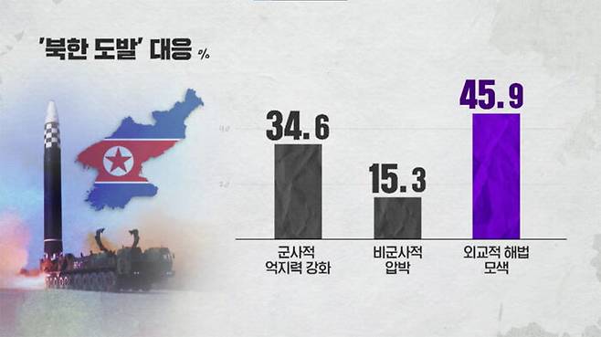 '한미 연합으로 군사적 억지력 강화'는 34.6, '대북 경제 제재 같은 비군사적 압박'은 15.3%였습니다.