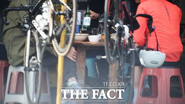 [기자: 보니까 술을 많이 드시네요? 자전거 탄 분들.]