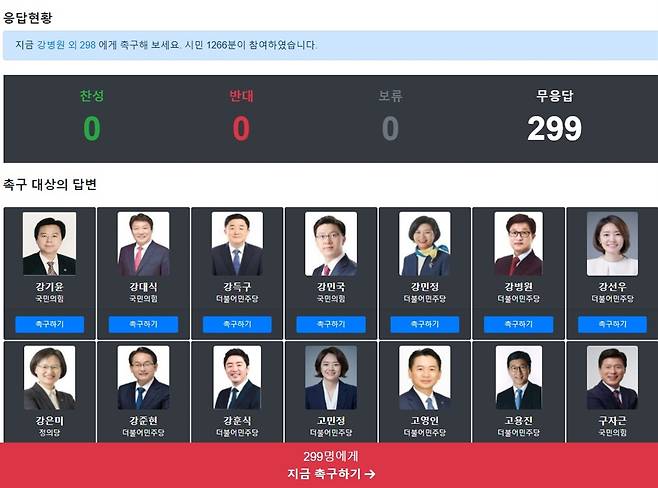 아래는 의원들에게 발송되는 촉구 내용이다.