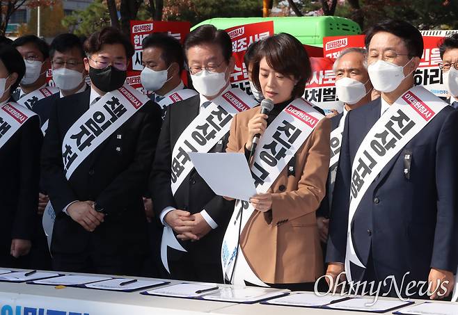 한편 이 자리에서는 이태원 참사로 사망한 배우 고 이지한씨의 어머니가 민주당에 보낸 편지가 낭독되기도 했다.
