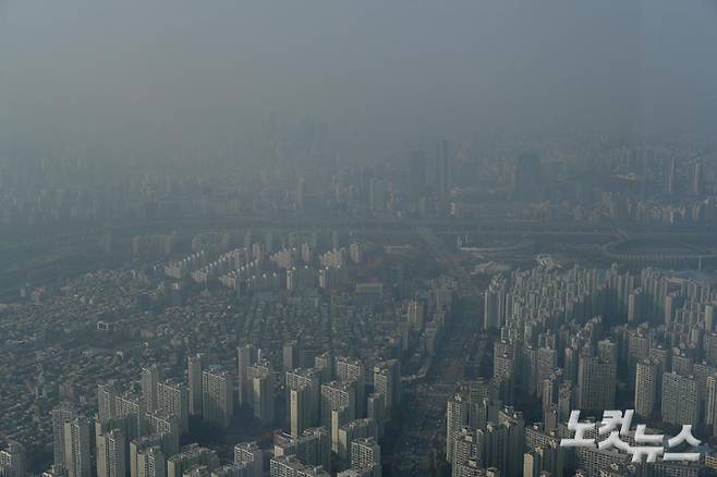 초미세먼지 농도가 나쁨 수준을 보이고 있는 11일 오전 서울 종로구 시교육청에서 바라본 시내가 뿌옇게 보이고 있다. 황진환 기자