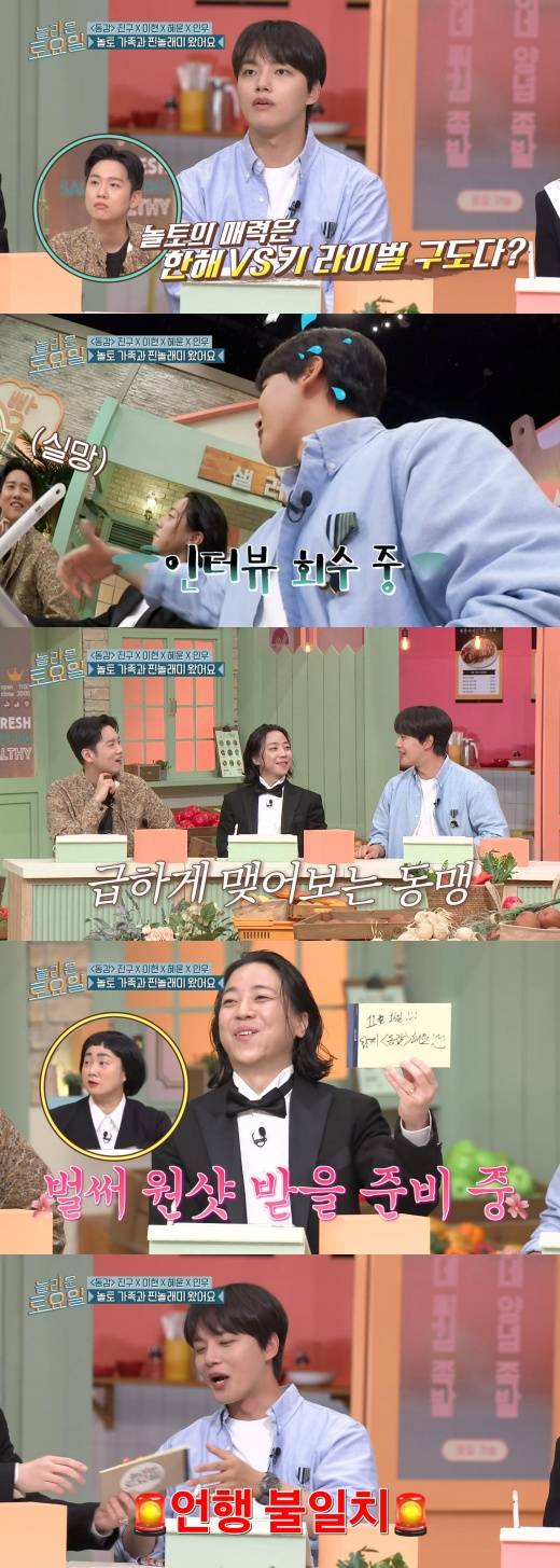 이날 ‘놀토’ 40회에 출연한 이후 약 200회 만에 재방문한 여진구에게 붐은 “그때 당시에 한해와 키의 라이벌 구도가 ‘놀토’의 매력이라고 하셨다”라며, “오늘은 키 자리를 노리고 싶다고 하셨다”라고 밝혀 놀라움을 자아냈다.