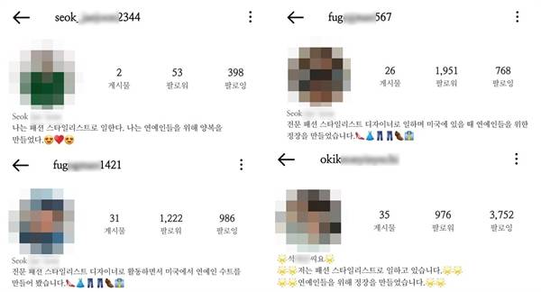 인스타그램에 '석OO'이란 이름을 치자 무수히 많은 계정들이 검색됐다. 이들은 대부분 비슷한 멘트의 자기 소개를 써 놓고 있었다. 이들의 팔로워 목록을 살펴보니 한국 여성 뿐만 아니라 일본, 미국 등의 타 국가 여성들도 여럿이었다. 그들의 계정을 팔로잉하는 사람들의 수도 적지 않았다.