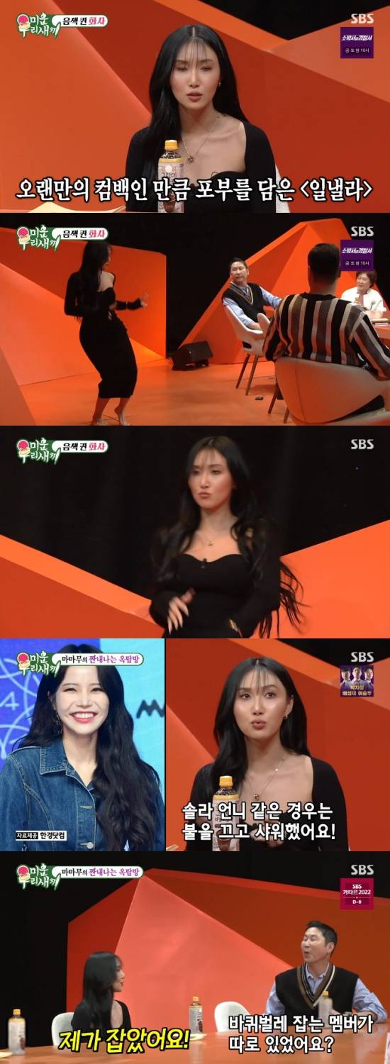 13일 방송된 SBS '미운 우리 새끼'에서는 화사가 게스트로 출연한 장면이 전파를 탔다.