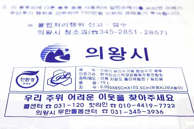 의왕시, 종량제봉투에 긴급복지지원 안내 문구 표기
