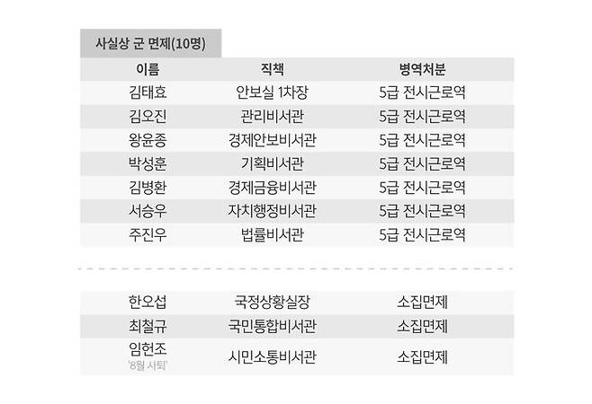 이관섭 수석 '방위'·장경상 비서관 '병장 만기'