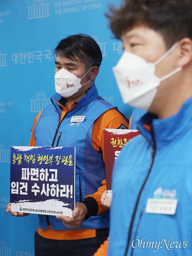 [오마이포토] 이상민 장관 고발한 소방노조, 국회 온 까닭