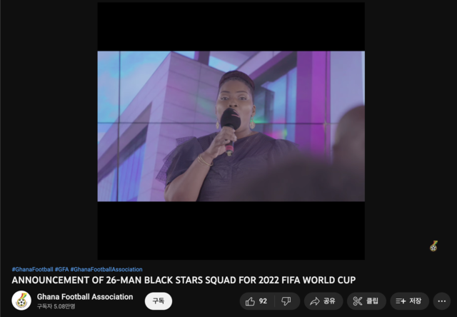 한국 축구 국가대표팀의 2022 국제축구연맹(FIFA) 카타르 월드컵 본선 상대 가나가 최종 명단 발표를 앞뒀다. 유튜브 라이브 스트리밍을 통해 26인 최종 명단을 공개하려던 가나는 현지 방송 상태 이상으로 발표가 지연되고 있다.