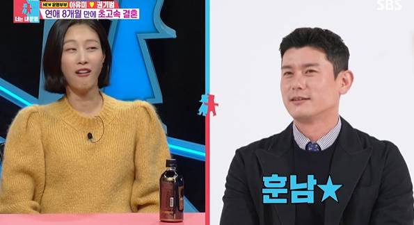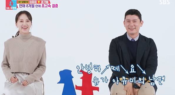 이날 아유미는 두 살 연상의 고수 닮은 꼴 남편을 최초공개하기로 했다. 연애 8개월만에 초고속 결혼하게 됐다는 두 사람. 궁금 증 속에서 베일에 싸인 남편을 공개했다. 아유미의 남편 이름은 권기범. 포장 패키지 사업을 하고 있다며 자신을 소개, 포장 제조업 CEO였다.
