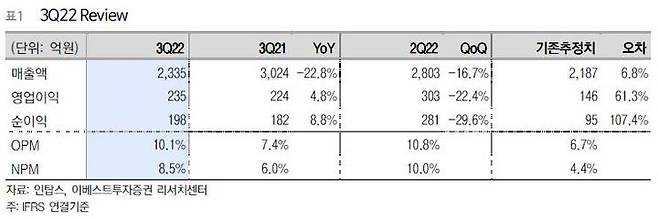 이베스트證 "인탑스, 3분기 실적 기대치 상회"