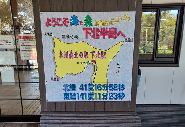 | ▲ 일본 혼슈 최북단역 기념표시 JR 시모키타 역 구내의 일본 혼슈 최북단역 기념표시 |