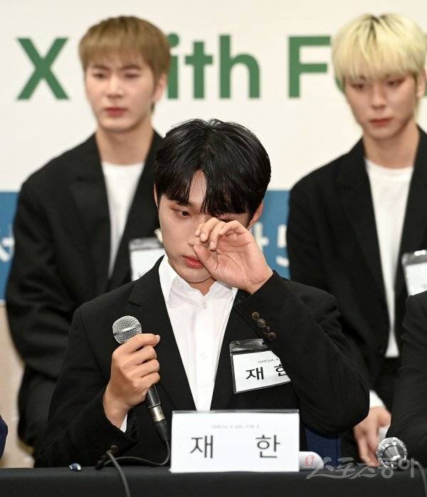 재한은 “포기하지 않고 달려온 만큼 멤버들과 팬들을 지키고 싶다. 좋은 무대로 설 수 있도록 많은 가능성을 열어두고 있다. 앞으로의 오메가엑스 향후 활동에 관심 가져주시면 감사하겠다”며 “팬 분들이 있기에 오메가엑스 11명 모두가 지금 이 자리에 올 수 있었다. 포기하지 않고 계속 좋은 모습으로 음악하고 무대하며 인사드리고 싶다”며 눈물을 흘렸다.