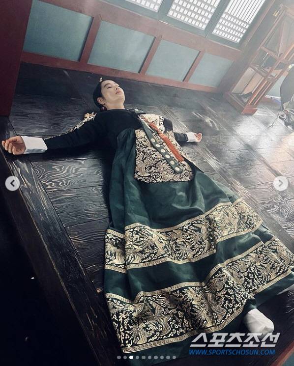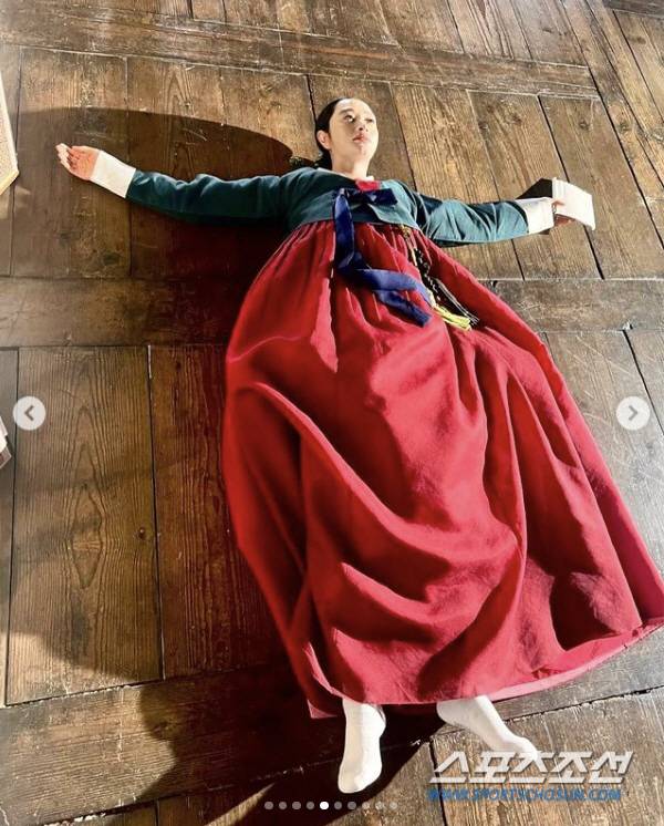 사진 속 김혜수는 한여름의 뜨거운 날씨 속에서 두꺼운 한복 차림으로 촬영 중간 중간 휴식을 취하고 있는 모습. 마루바닥에 누워 간신히 더위를 식히는 모습이, 지난 여름 얼마나 고생을 했는지 여실히 보여준다.