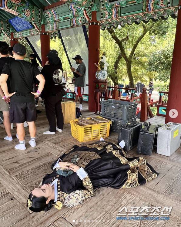 그냥 있어도 더울 한여름에 두꺼운 한복을 있는대로 차려입고 촬영에 임했으니 절로 기진맥진했을 터. 어디 멀리 가지도 못하고 휴식을 취하는 모습이 안쓰러움을 자아낸다.