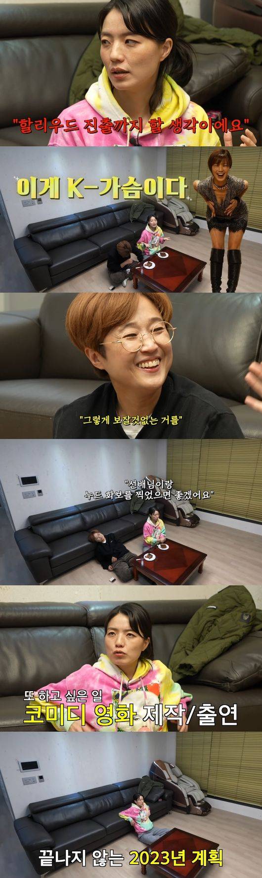 송은이는 "그렇게 보잘것 없는 거를 k가슴이라고 내세울수 있냐"고 돌직구를 날렸고, 안영미는 "그래서 내가 치트키로 선배님을 생각했다. 관객들이 한국을 얕잡아보려고 할때쯤 선배님이 등장하는거다"라고 말해 웃음을 자아냈다.