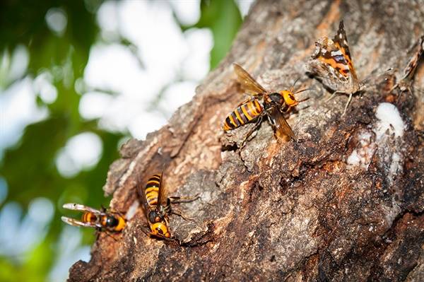 | ▲ 장수말벌. 수액을 마시며 다른 곤충을 쫓아내고 있다. |
