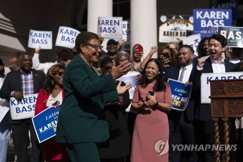 Los Angeles Mayor-elect Karen Bass interacts with cheering supporters at a news conference in Los Angeles, Thursday, Nov. 17, 2022. Bass defeated developer Rick Caruso to become the next mayor of Los Angeles on Wednesday, making her the first Black woman to hold the post as City Hall contends with an out-of-control homeless crisis, rising crime rates and multiple scandals that have shaken trust in government. (AP Photo/Jae C. Hong)