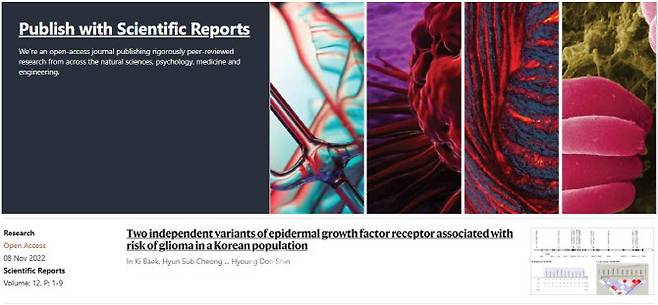 논문에 따르면 연구진은 신경교종의 위험도와 연관된 변이를 찾기 위해 신경교종 환자 324명, 건강 대조군 480명 등 총 804명의 혈액 DNA를 대상으로 EGFR 유전자와의 연관성 분석을 수행한 결과 유전변이가 한국인의 신경교종 환자와 연관이 있음이 확인됐다. 신경교종은 뇌 또는 척추의 신경교 세포에서 시작되는 종양으로 발병 원인이 뚜렷하지 않고 증상이 다양하며 예후가 좋지 않은 암으로 알려졌다.