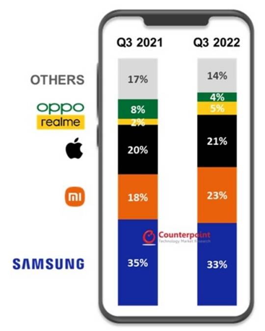 카운터포인트리서치는 "샤오미와 리얼미는 러시아에서 애플과 삼성이 공식 철수한 상황을 발판으로 삼아 특히 동유럽 시장에서 출하량이 크게 증가했다"며 "이로 인해 샤오미는 애플을 제치고 2위 자리에 올랐으며, 리얼미는 오포의 분기 실적이 저조한 틈을 타 유럽 스마트폰시장에서 4위에 올랐다"고 언급했다.