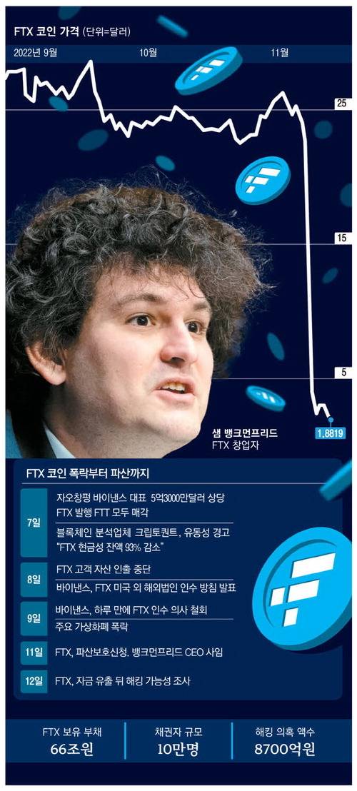 이런 위험의 불씨에 아예 기름을 부은 건 세계 1위 암호화폐 거래소인 바이낸스의 자오창펑 CEO였어요. 자오 CEO는 “FTT는 루나·테라처럼 폭락할 수 있을 것”이라며 보유 중인 FTT 5억 3000만달러(약 7300억원) 상당을 모두 매각하겠다고 밝혔어요.