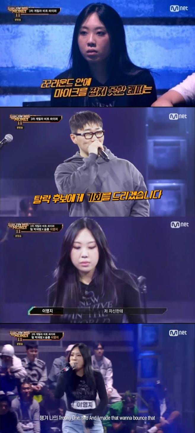 11월 18일 방송된 Mnet '쇼미더머니11'(이하 '쇼미11')에서는 우승 후보였던 이영지는 탈락 후보가 되는 돌발 상황이 그려졌다.
