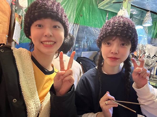 사진 속에는 포차를 방문한 지민과 설현의 모습이 담겨 있다. 커플 털모자를 쓴 두 사람의 귀여운 비주얼이 미소를 자아낸다.