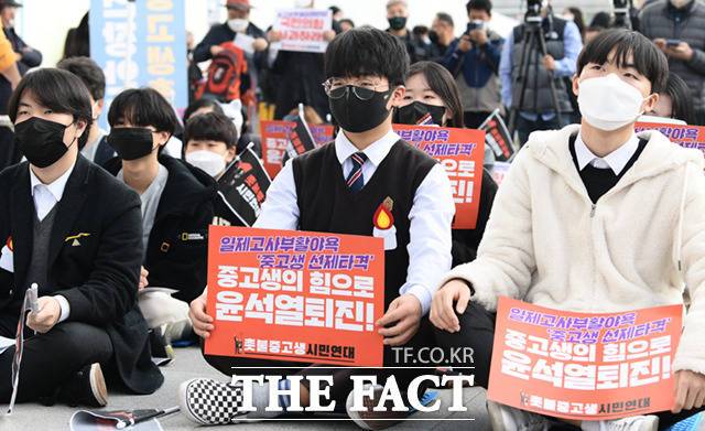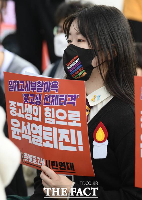 '중고생의 힘으로 윤석열 퇴진' 교복 차림 거리로 나온 학생들 [TF사진관]