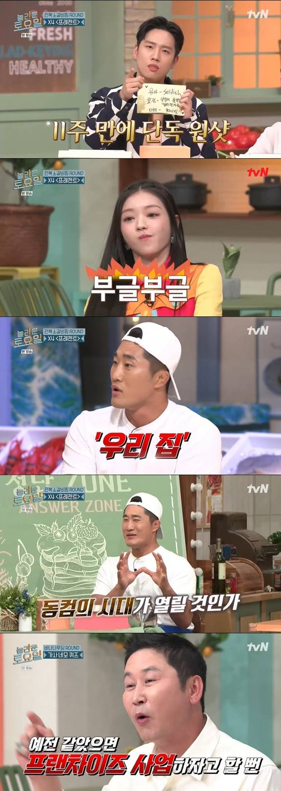 이때 김동현은 "이거 대박이다"라며 빈 글자가 '우리집'이라고 유추했다. 붐은 "단 한 번도 누구 거와 본인 거를 비교한 적이 없지 않나. 왜 오늘!"이라며 당황한 모습을 보였다.