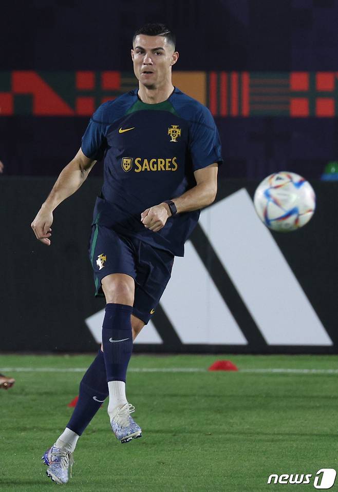 (도하(카타르)=뉴스1) 이광호 기자 = 크리스티아누 호날두를 비롯한 포르투갈 축구대표팀이 19일 오후(현지시간) 카타르 알샤하니야 스포츠클럽에 마련된 훈련장에서 훈련하고 있다. 2022.11.19/뉴스1