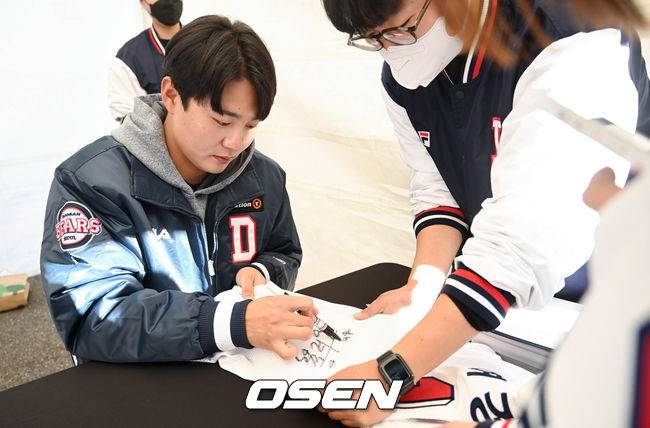 두산 정철원이 곰들의 모임 사인회에 참석해 팬들에게 사인을 해주고 있다. 2022.11.20 /cej@osen.co.kr