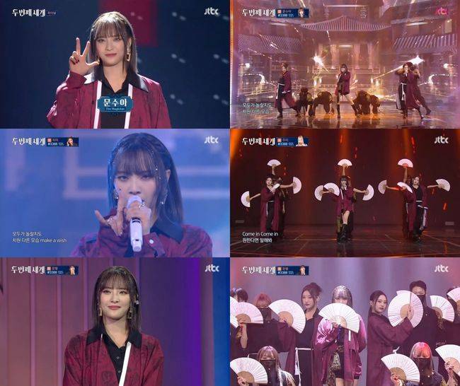 팀에서 메인래퍼 포지션인 문수아는 ‘두 번째 세계’에 출연하게 됐다. 문수아는 “보컬 욕심이 많았지만 두려움이 컸다. 한 번도 제대로 노래를 해본 적이 없어서 일단 제 목소리에 두려움도 컸고, 항상 ‘나는 랩을 해야 한다’라는 인식도 있었다. 그런데 소속사에서 ‘너는 진짜 보컬 잘한다’, ‘보컬이 너무 좋다’는 이야기를 해줬고, 혼자서도 연습을 많이 하기도 했는데 이런 기회가 주어져서 생각이 많아졌었다. 혼자서 하는 무대이고, 보컬 뿐만 아니라 무대 자체를 혼자서 다 해야 한다는 생각에 ‘무조건 한다’고 하면서도 부담이 됐다”고 말했다.