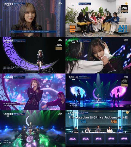 문수아는 허스키한 목소리 때문에 자신에 대해 한계를 두게 됐고, 선입견도 가지게 됐다고 말했다. 그는 “‘두 번째 세계’에서도 많이 이야기를 했는데, 보컬로 무대를 혼자 할 수 있다고 생각을 해본 적이 전혀 없었다. 특히 허스키한 목소리 때문에 콤플렉스가 있었는데, 목소리 때문에 장르적으로도 한정적으로 생각을 했었다. 발라드 쪽보다는 락이나 재즈 쪽이 내게 잘 어울리겠다고 생각했다. 첫 라운드에서 발라드를 했는데, 결과는 졌지만 보컬적으로도 솔로로서도 도전을 해냈다고 생각한다. 1라운드에서 내가 내 스스로 가졌던 선입견에서 나올 수 있었다. 그래서 두 번째 무대부터는 더 나를 놓고 모든 걸 도전한 느낌이었다”고 말했다.