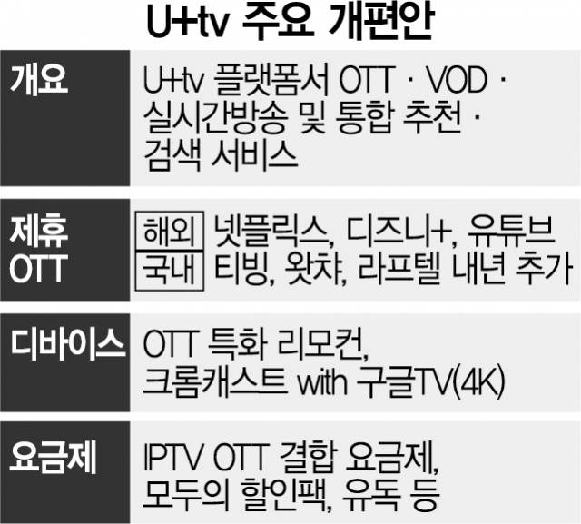 여러 OTT를 구독할 필요 없이 자사의 IPTV 서비스인 'U+tv' 하나로 각종 콘텐츠를 제공해 고객이 오래 머무는 플랫폼을 구축하겠다는 것이다.