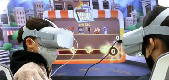 제3회 유성과학축제가 지난 19일 대전 유성구 기초과학연구원에서 열려 어린이들이 VR체험을 하며 즐거운 시간을 보내고 있다.