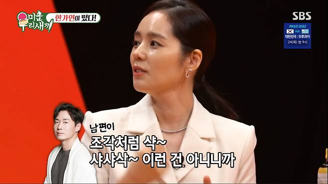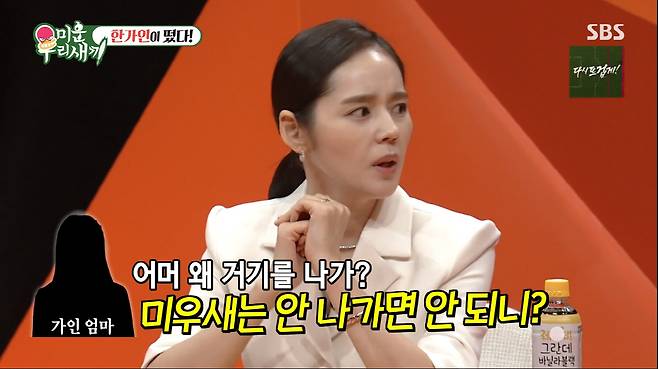 신동엽은 "가족들은 예능에 나가는 걸 두려워한다고 하던데"라고 물었고, 한가인은 "남편이 제가 나오는 기사를 보고 있다가. '어후 이런 말은 또 언제했어'라고 하더라. 또 어머니가 '미우새'나간다고 했더니 '왜 거길 나가 미우새는 안 가면 안 되냐. 시청률도 잘나오는데'라며 극구 말리셨다. 내가 방송하는 사람인데라고 했지만 '안나갔으면 좋겠다. 어떡하니'라고 하시더라"라고 말해 웃음을 자아냈다.