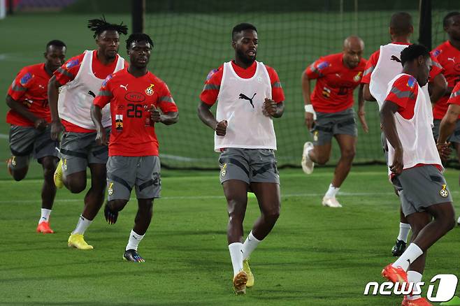 (도하(카타르)=뉴스1) 이광호 기자 = 이나키 윌리엄스를 비롯한 가나축구대표팀 선수들이 21일 오후(현지시간) 카타르 아스파이어 존 훈련장에서 훈련하고 있다. 2022.11.21/뉴스1