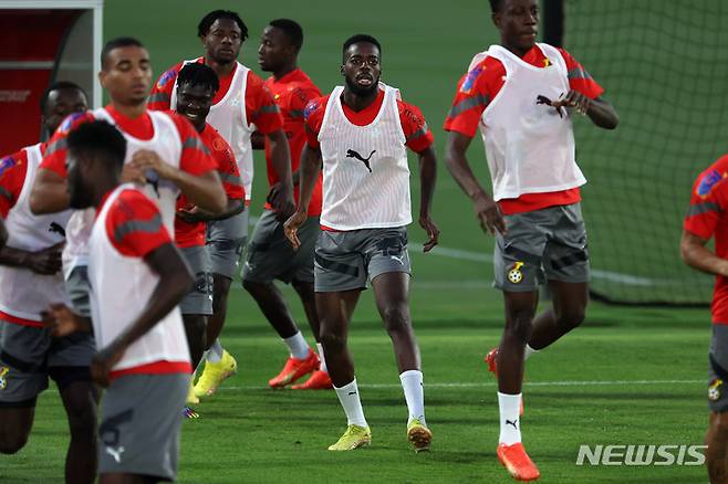 [도하(카타르)=뉴시스] 백동현 기자 = 이나키 윌리엄스를 비롯한 가나 축구대표팀 선수들이 21일(현지시간) 오후 카타르 도하 에스파이어 존 트레이닝센터에서 첫 공개훈련을 하고 있다. 2022.11.21. livertrent@newsis.com