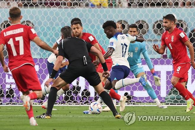 잉글랜드의 부카요 사카가 두번째 골에 이어 네번째 골을 성공시키고 있다. 2022.11.21