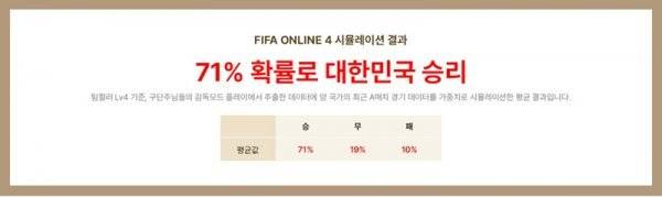 넥슨이 ‘피파온라인4’에 누적된 감독모드 플레이 빅데이터를 분석한 결과도 16강 진출길이 험난할 것으로 나왔다. 한국은 우루과이와 포르투갈에 열세지만, 가나에겐 이길 가능성이 높은 것으로 나타났다. 가나전의 승리를 전제로 우루과이·포르투갈전에서 무승부로 선전한다면 16강 진출에 청신호를 켤 수 있다. 하지만 가나에 패할 경우 16강 진출은 사실상 불가능한 것으로 나타났다.
