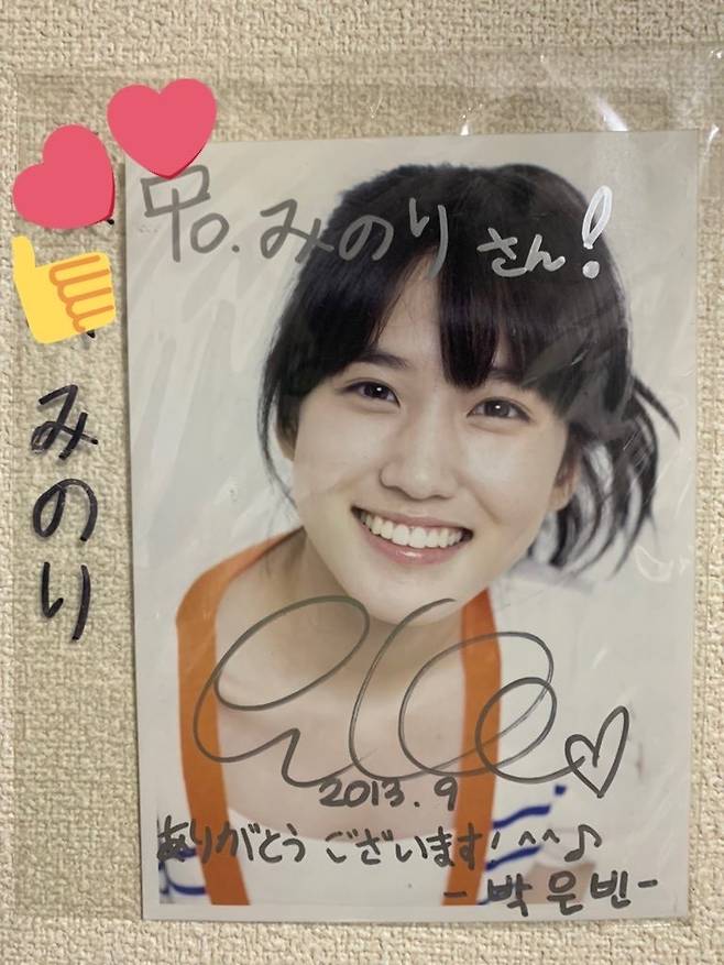미노리는 기자에게 대화와 이메일을 통해 “드라마 ‘태왕사신기’(2007)를 보고 박은빈을 좋아하게 됐고 지금까지 14년째 같은 마음으로 응원하고 있다”고 자신을 소개했다. 그는 “2008년 한일 관계가 좋지 않았지만 친해지고 싶은 마음에 박빙(애칭)에게 선물을 보내기 시작했다. 한국에 간 적도 있다”고 말했다. 놀라운 건 박은빈이 자신이 보낸 선물을 꼬박꼬박 인증해줬다는 사실.